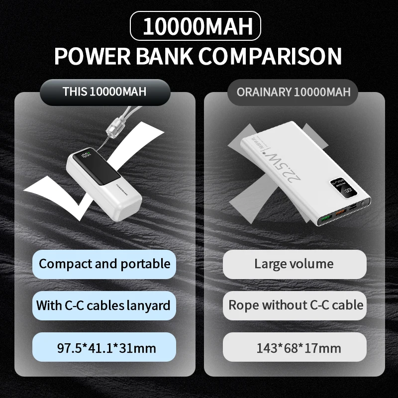 type: 2 in 1 quick charger power bank, Fast Charging, High Capacity, Led Display, Portable, Ultra Slim, With Plug, With cable, for outdoor