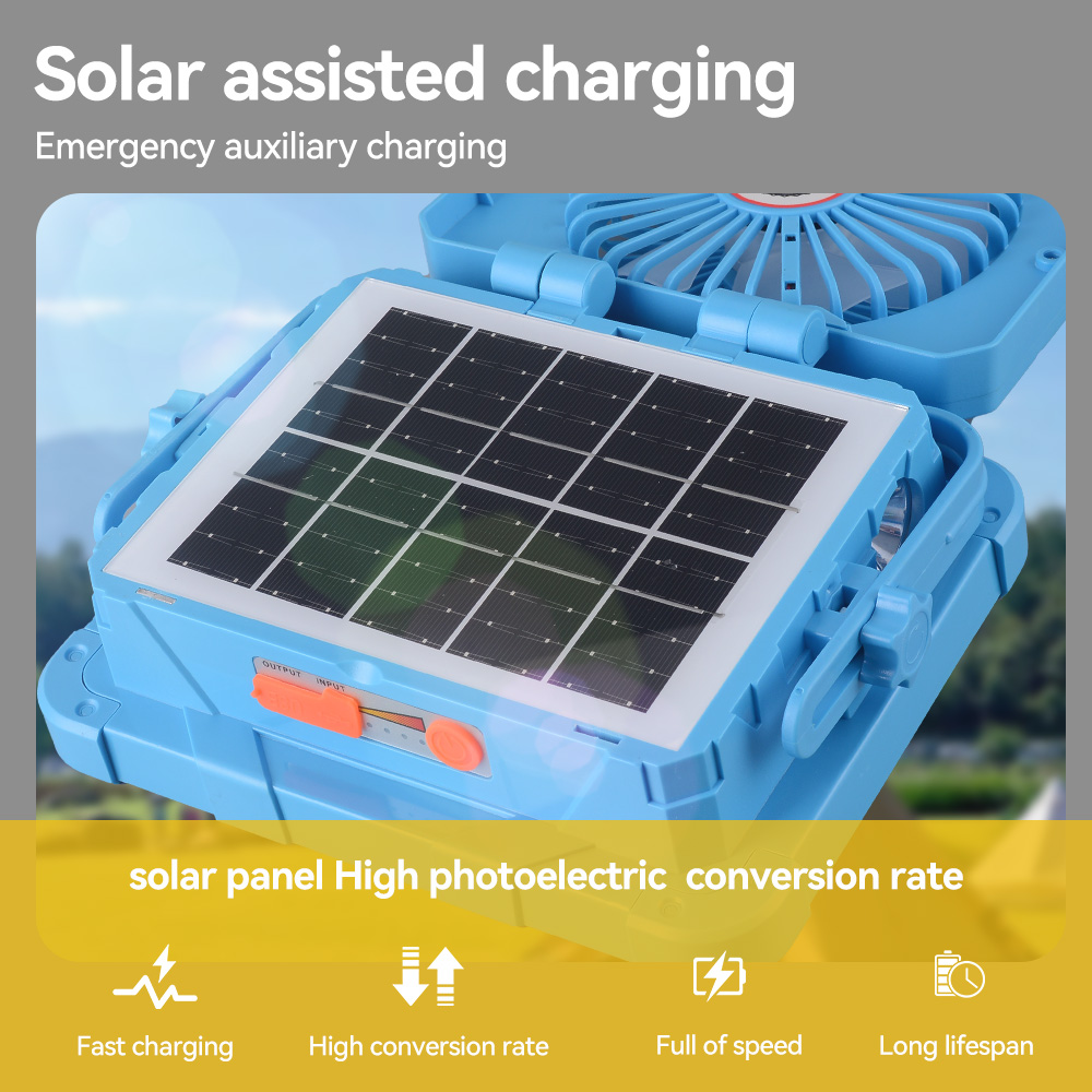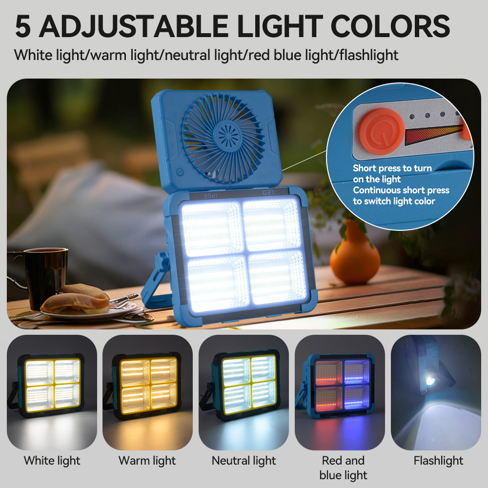 Features: Solar Powered & USB Rechargeable, Portable, Hanging, Waterproof, With Fan Light